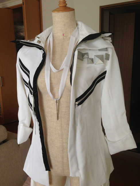 襟元のスタッズは市販の金属スタッズだから洗濯できるよー。