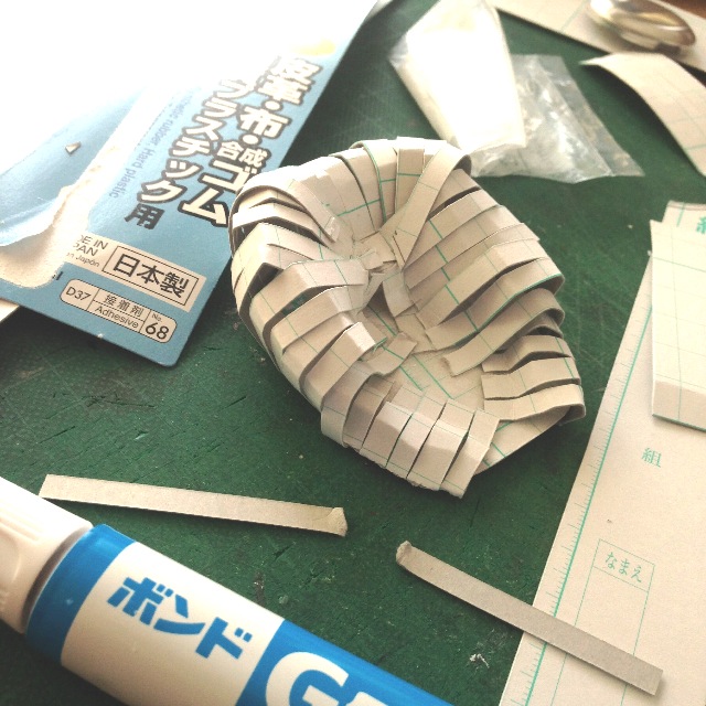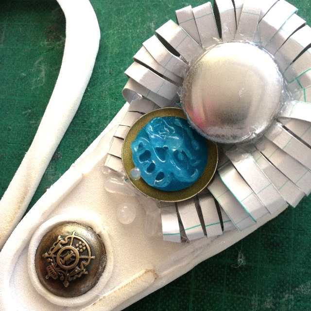 模様っぽいところはグルーガンで必死に形を作ります。それっぽく。