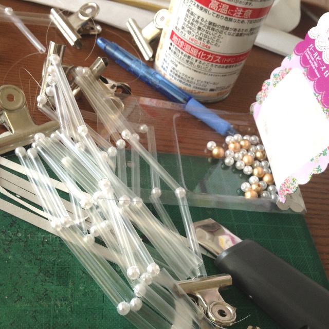 量が重要なのでストローと100均のパールビーズをひたすらつなぎ合わせ作成。
