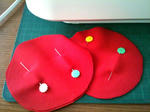 まず耳あて部分の赤クッション用に一回り大きく赤生地裁断。