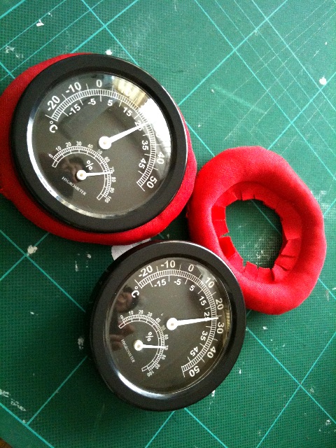 とりあえず両面で温度計にクッションを固定。