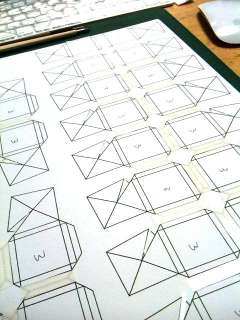 のりしろ部分に両面テープを貼り、あとはひたすら切っていきます。