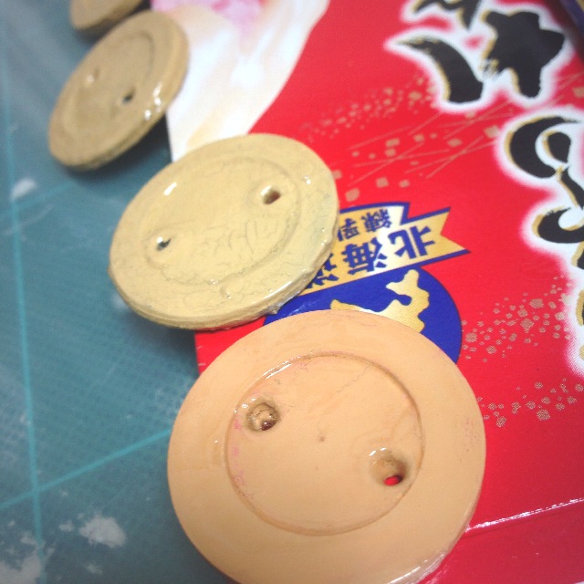 形はボタンぽくなりました。今回はデザインに合わせて2つ穴。