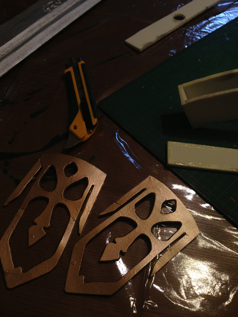 どれも黒のジェッソで塗装してから金色をスプレーしています。