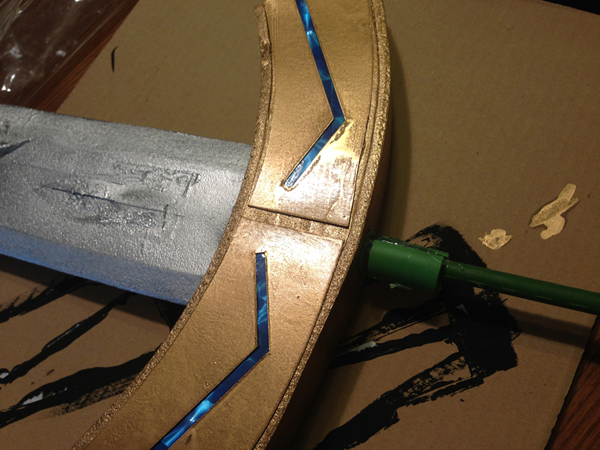 再度刀身を貼りあわせたら、今度は刀身を持ち手にしっかりハメ込むための