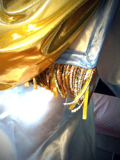 フードはラメ生地と裏地用の適当な色生地の2色で。